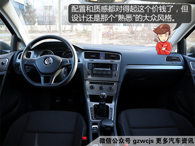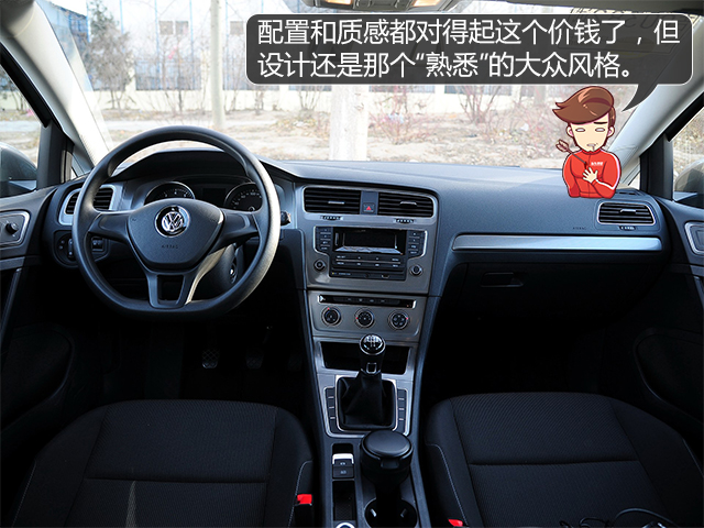 内饰方面,毕竟是低配车,配置肯定会比较简约。真皮多功能方向盘变成了塑料材质的普通方向盘,但手感依然不错。留下来的配置有ESP、电子手刹、Autohold等等,保证了一定的实用性。值得赞扬的是低配高尔夫依然采用了与其他车型一致的仪表盘,内饰也采用了银色饰板和镀铬饰条的装饰,看起来不会十分廉价。