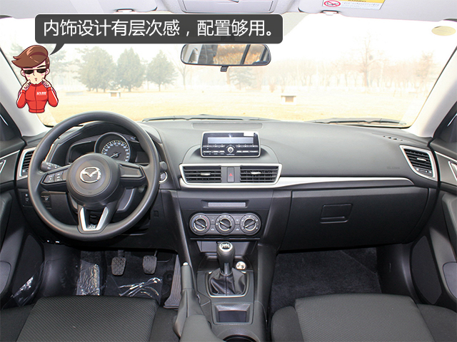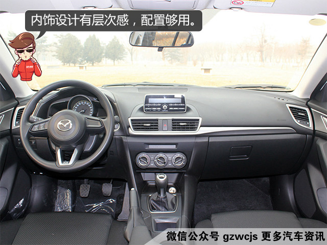 昂克赛拉的内饰设计维持了阿特兹上的风格,颇有层次感,让教授略惊喜的是有不少全系标配的实用配置,如一键启动、车身稳定系统、前排侧气囊、发动机启停等等,这让低配昂克赛拉的性价比更高了。座椅为织物面料,包裹性不错,但不太柔软,加之后排空间偏小,所以乘坐舒适性只能说一般。
