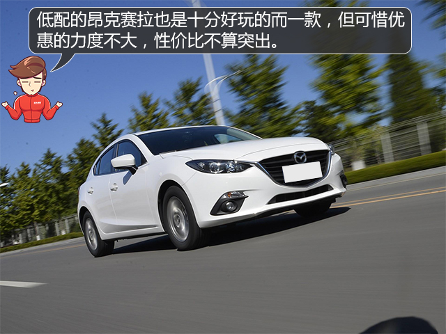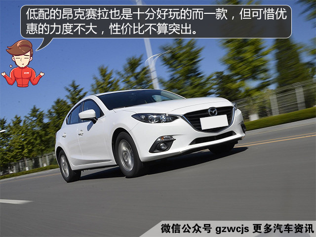 教授点评:如果你对天窗、导航等配置的需求不明显,以搭乘一人或两人居多且对驾驶乐趣有追求的话,昂克赛拉的低配值得考虑。要注意的是昂克赛拉一向的优惠力度都不算大,普遍在1万以内,比上面的高尔夫和福克斯都要略贵。对驾驶乐趣和魂动外观不感冒的话可以考虑其他车型。