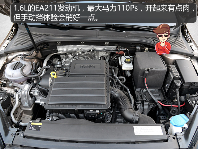 动力方面,搭载了1.6L的EA211发动机,最大马力为110Ps,最大扭矩为155N·m,变速箱则为5MT。1.6L的动力表现肯定会十分平庸的了,胜在大众的5MT还是十分好开的,挡位清晰行程短,多少人接触汽车都是从大众的5MT开始啊。