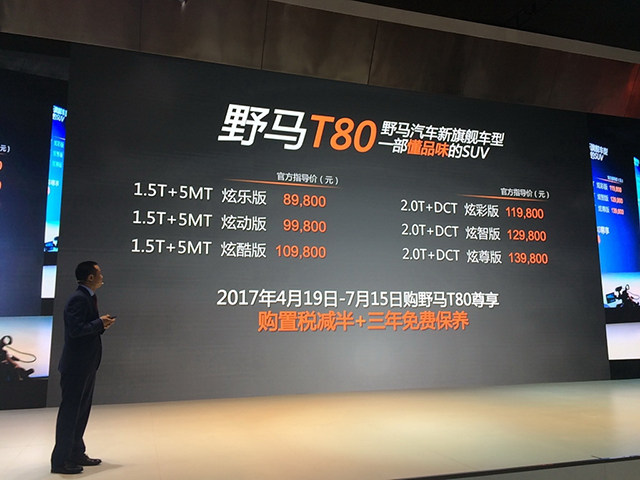 作为野马汽车主打的旗舰型SUV,野马T80凝聚了野马汽车先进的设计理念和技术成果,具有“高颜值、高品质、高驾值”等核心优势,集“动感、质感、光感”“三感”于一身,成就为一部懂品味的SUV,它以超越同级的配置及同级中极具竞争力的价格,必将成为2017年中国车坛的一匹“黑马”。