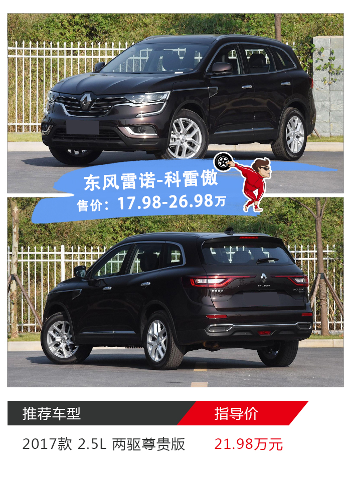 不喜欢轿车,想要SUV?没问题,科雷傲来满足你,虽然出自于雷诺日产联盟,但科雷傲还是带有浓郁的法国色彩,设计就是最能体现的地方,与日产奇骏的干净利落不同,科雷傲要更加有设计感。