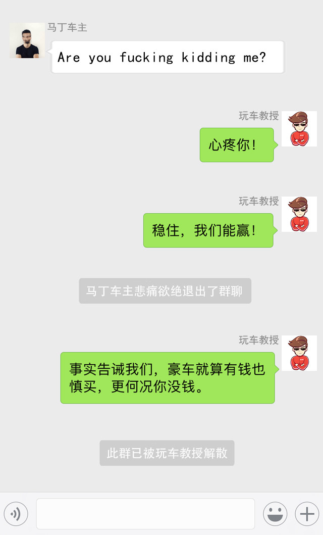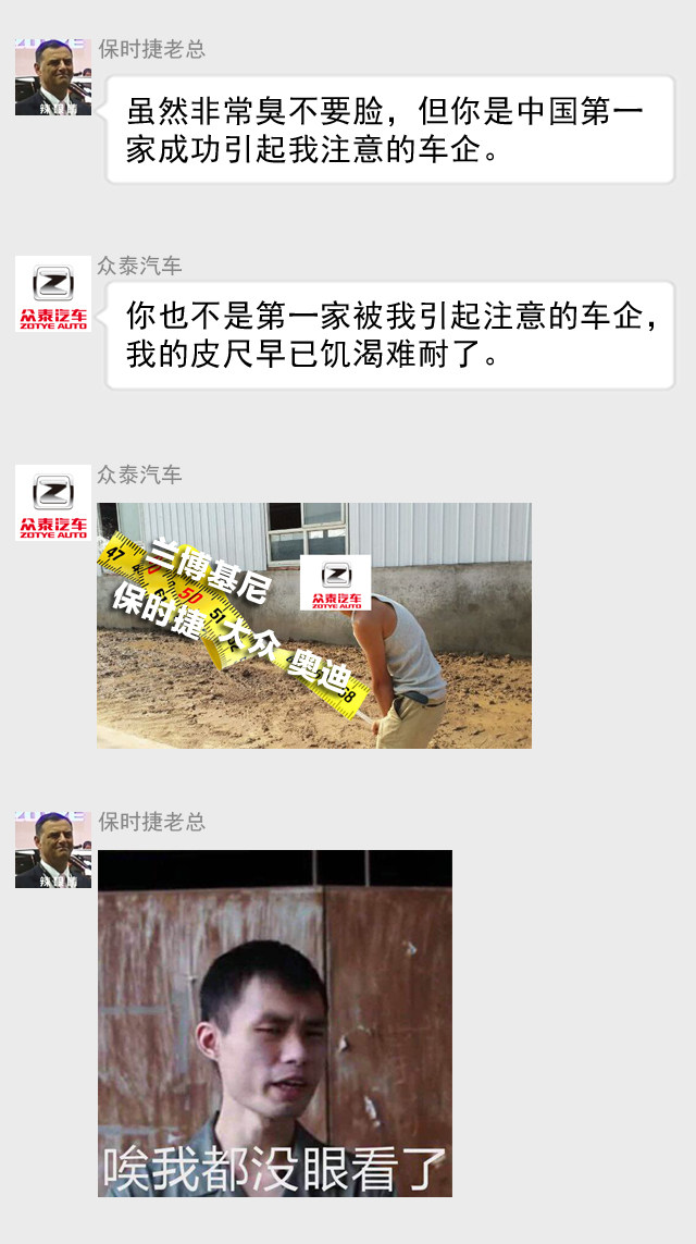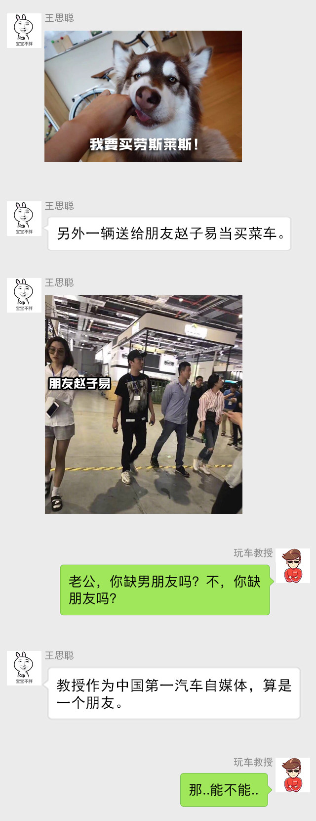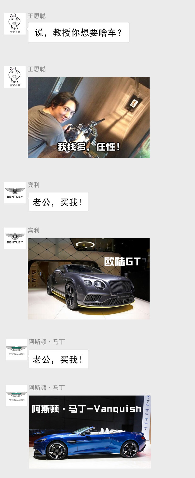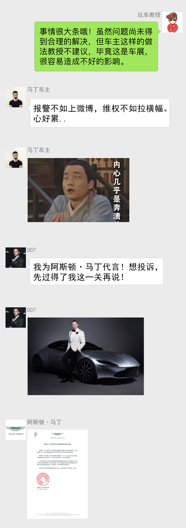 除此之外,车展上的花边新闻也非常有意思,保时捷老总误进众泰展台、国民老公王思聪在车展开幕前连买两台劳斯莱斯、阿斯顿·马丁车主拉横幅展台投诉,很可惜没有大家期待的哪位车模或礼仪大尺度走光这样的新闻,这次教授就来挖一下这几个花边新闻,试采访下上面几位主人公当时候的想法,其实如果不是王思聪早到几步,教授就把那两台劳斯莱斯收入囊中了。