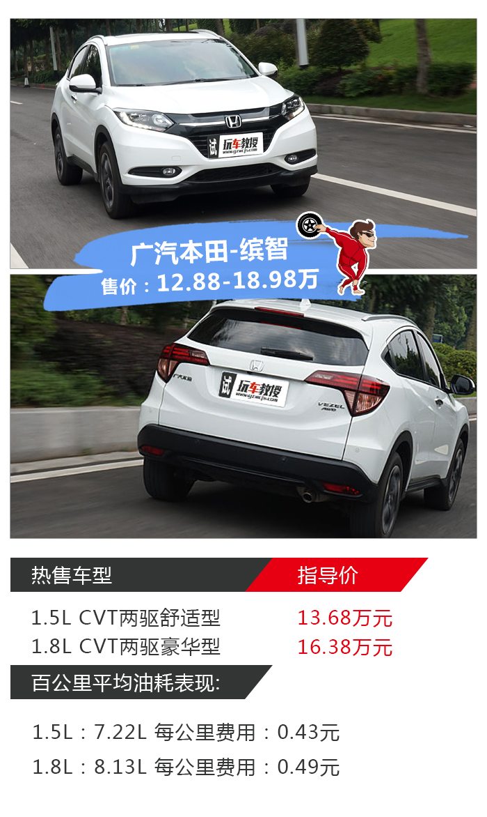 教授辣评:这也是一个不得不承认的事实,日系车就是省油,在今天所介绍的几款车型中,缤智可以说是最省油的,得益于本田在发动机方面的造诣,油耗低、动力强两者均可兼得,实为家庭用车必备产品,但是在教授看来缤智的隔音降噪水平真心有待提高。
