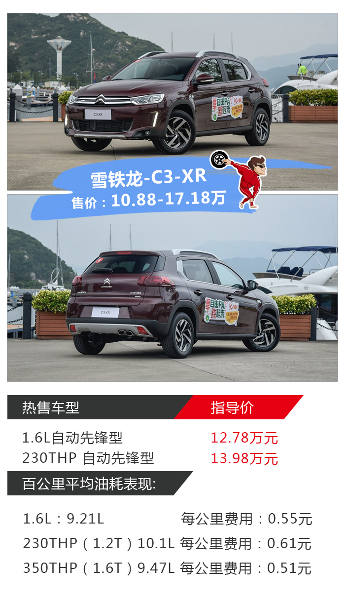 教授辣评:在外观方面设计虽然没有过于惊艳,但是造型设计年轻,符合年轻消费者的审美观念,在动力方面,法系车1.6T+6AT的这一套黄金动力表现十分出色配合上法系车一贯出色的底盘调校,这一台C3-XR无疑是一款非常好开的SUV。但是车型价格稍高以及在配置丰富程度上足以注定它是一款小众SUV,懂它的人自然会懂。