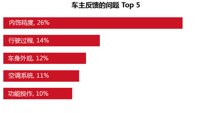 排名第三的则在车身外观上,有小部分车主反馈前门会有异响,而且车门阻尼感过强,开启以及关闭都比较费力。
