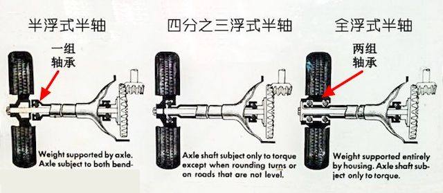 现代汽车常用的半轴,根据其支承型式不同,有全浮式和半浮式两种(亦有分为三种,即全浮式、3/4浮式、半浮式的说法)。