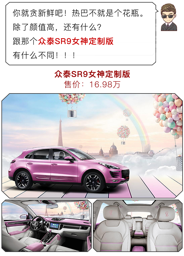 1、车身及内饰配色——女神最爱粉红色。而且着色程度及防刮保护程度都是为女生专门设计的。没爱过粉红色的女生能称得上女神吗?