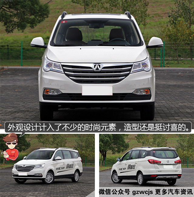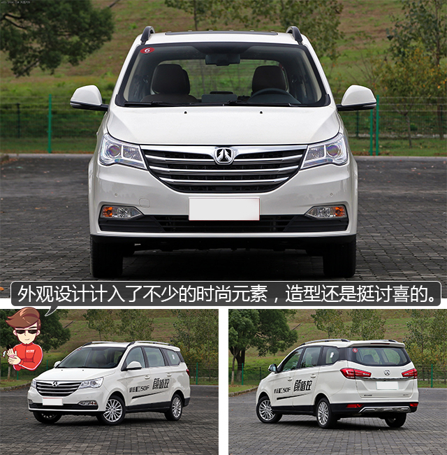 威旺M50F的造型多少都留下一点点“微面”的影子,但北汽威旺还是很努力地给它营造一些生活化的气息。像前脸的霸气镀铬中网、侧面交错的腰线和悬浮式的车顶设计,再搭配一个不大的尾翼,尽量让M50F看起来是一款家用MPV。