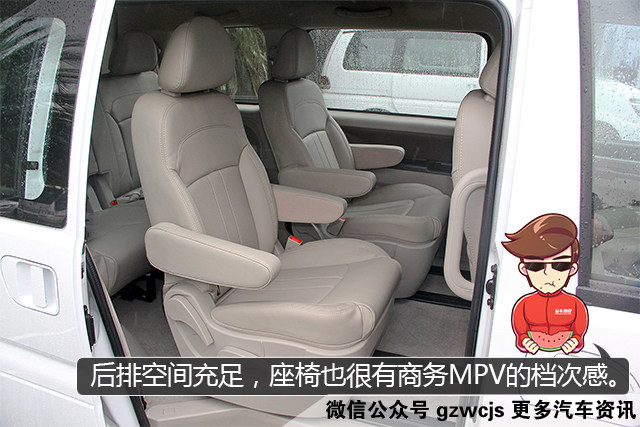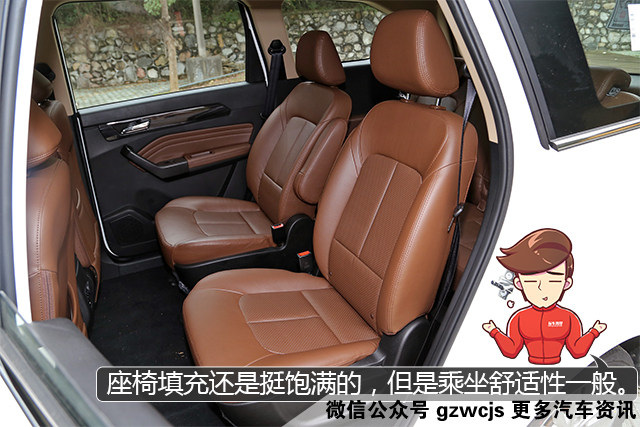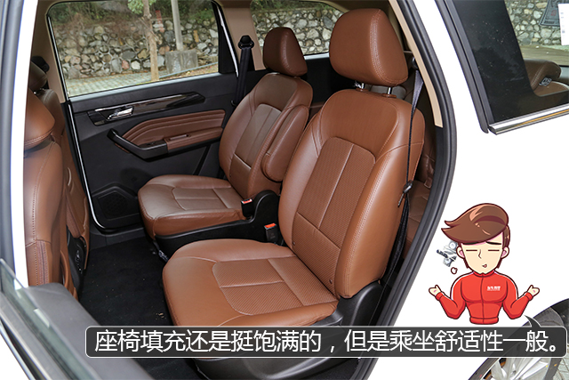 后排空间十分宽裕,轻松坐下七个成年人是没有问题的,教授最欣赏的是其后排座椅柔软度很好,皮革的质感也不错,舒适性直逼合资车。更惊喜的是,该车的第三排座椅也填充得足够饱满,而且前方又有专门放脚的空间,是难得的适合长途乘坐的第三排,只可惜没有中央头枕。