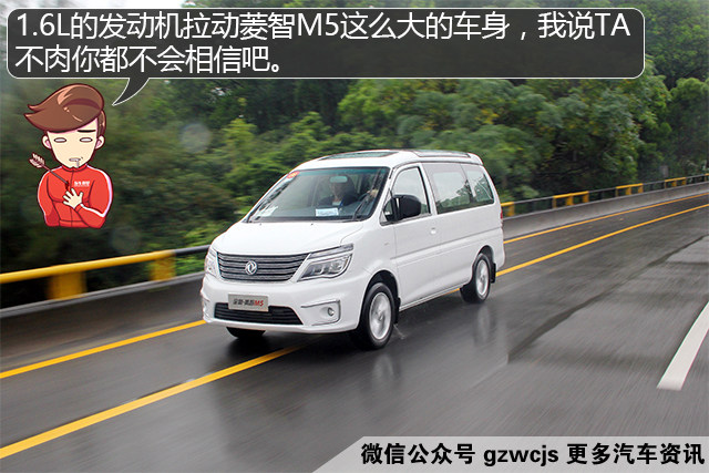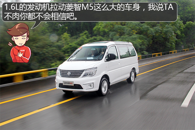 菱智M5主打1.6L的发动机,最大马力122Ps,变速箱方面则为5MT,一台1.6L的发动机拖着这么大的车身,难免会有小马拉大车的感觉了。但该车的变速箱齿比调校合理,所以60km/h以内还是相当轻快的,只是后段的加速会比较乏力了。