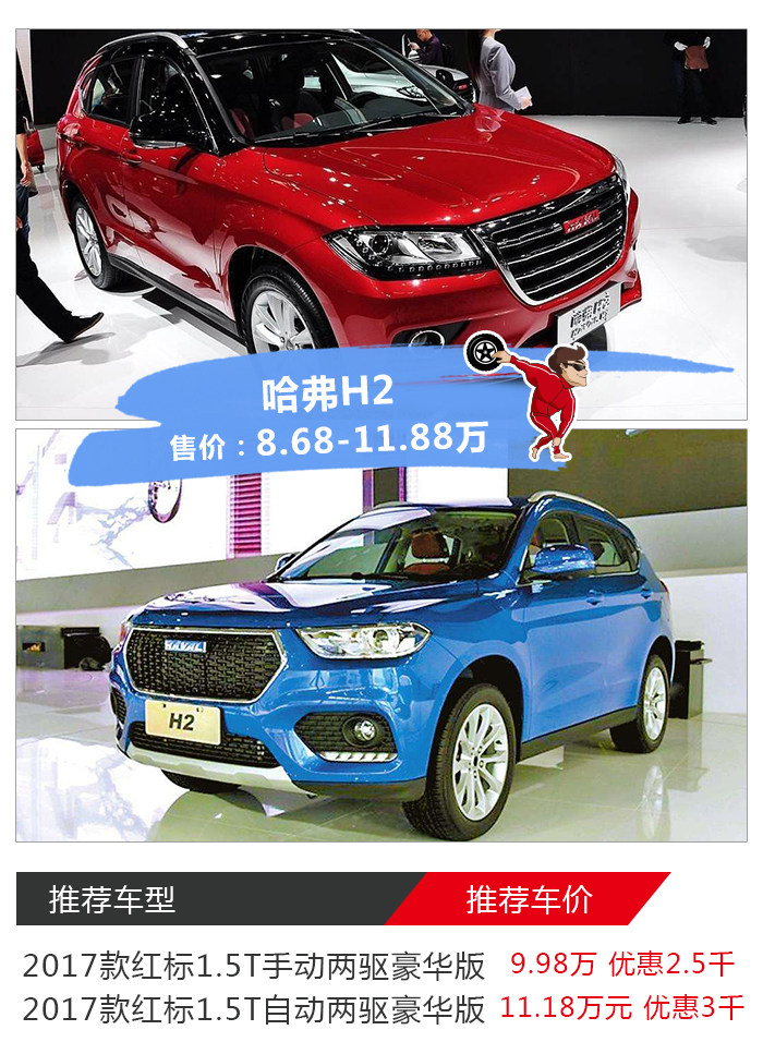 针对于长安CS15和比亚迪元来说,降价2-3千,优惠确实不错,而哈弗H2的本身定价较高,即便降个3千,落地也要10万出头,所以大家结合自己不同的用车情况,选出心目中喜欢的车型吧。