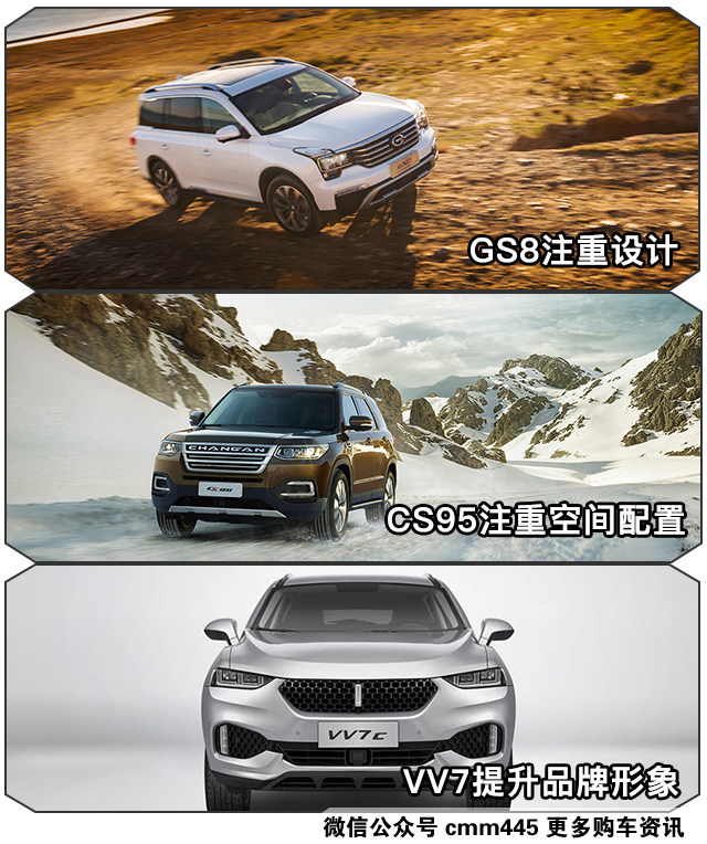 例如传祺GS8(16.38-25.98万)、长安CS95(15.98-22.98万)、以及长城WEY VV7(16.78-18.88万)等,这类中型SUV或许是因为出色的设计理念、或许是更大的车内空间、亦或许是在品牌形象和定位上更加高端的身份,在上市后都引发了极大的关注热度。而且,他们的定价都不算太高,符合广大消费者的普遍心理预期。设计出色、配置和定位更高、价格还不算离谱的车型自然很容易抓住消费者的心。