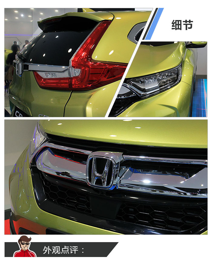 老款CR-V虽然整体的实力还是不错的,但确实已经上市了很长时间;到了该换代的时机了。新款的CR-V采用全新的家族式造型设计,新的前脸比老款更加年轻。镀铬格栅与大灯一体化的设计让其前脸的气势进一步提升;车身侧面线条设计得更加流畅自然。车尾则被两个造型很独特的尾灯所占据。