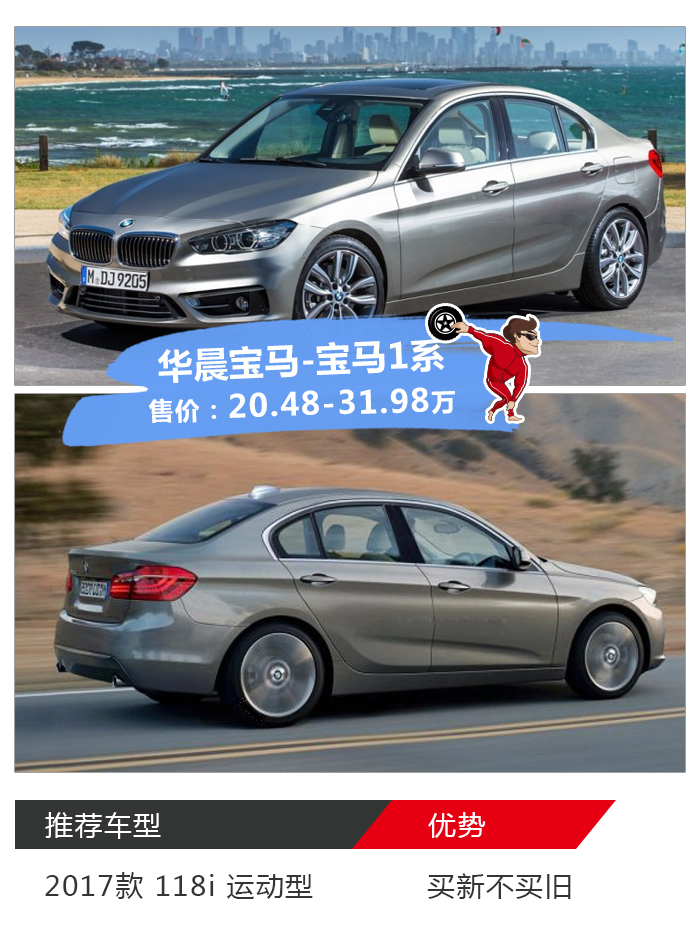 而在近期新出的宝马1系三厢版则很好的解决了上述老款的问题,虽说是既戴套、又割肾、还把健硕的一双后腿废了,但女神可不在乎这些。更大的车身、更顺眼的外形、更像大哥5系的造型这才是女神所想要的。
