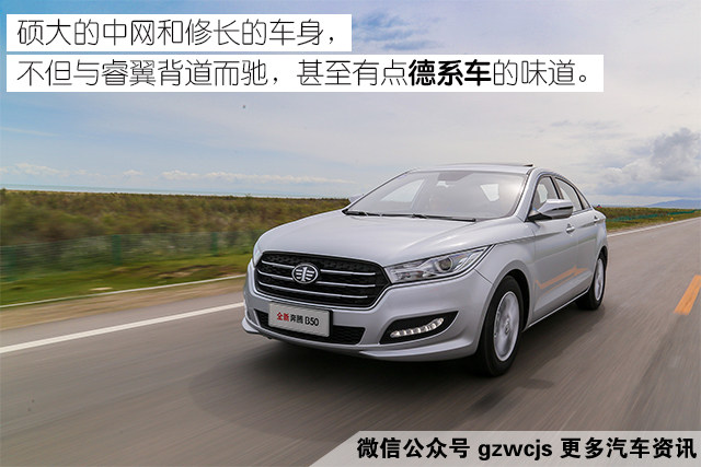奔腾B50的外观上并没有参照马自达的风格,硕大的中网反而有点欧洲车的霸气。长达2725mm的轴距让B50的侧面看起来相当修长,整车的外观比例还是比较合理的。内饰的做工用料和设计感都比旧款有进步,对比同级对手并不差,只是配置方面难寻亮点。