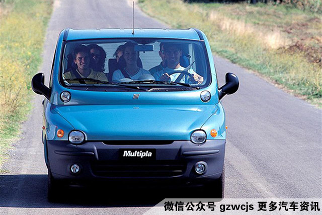 2002款菲亚特 Multipla,教授认为是菲亚特产品库的奇葩担当。两组前灯、灵感源于UFO的前挡风玻璃以及面积夸张的侧玻璃面积最为吸睛。