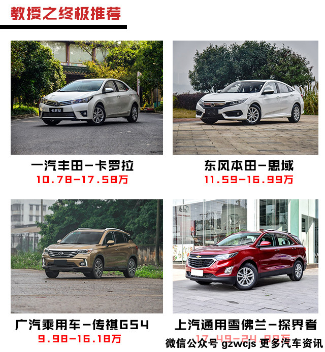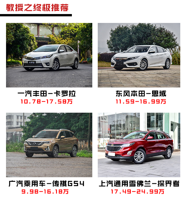 按照上述所说的几点,教授推荐大家几款比较值得购买的车型给大家参考一下,同时综合后台粉丝的提问,教授整理出几个购车疑问。