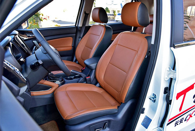 长安CX70的内饰造型简单,比较大气,中控上采用的屏幕也很大,并加入银色装饰和烤漆面板,升高了车内不少档次,配置上,大部分车型都标配ESP车身稳定系统,上坡辅助,电动天窗,倒车雷达,倒车影像,仿皮座椅等等。