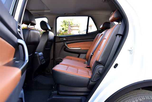 东南DX3虽然作为一款小型SUV,但其后排的腿部空间也不是非常局促,一个正常体重70kg的男性坐下去,还有一拳三指的长度,座椅的靠背比较扁平,后备箱储物空间比较常规,不过因为后多连杆悬挂的设计,多了两个“鼓包”,所以标准纵深只有790mm,宽度只有990mm。
