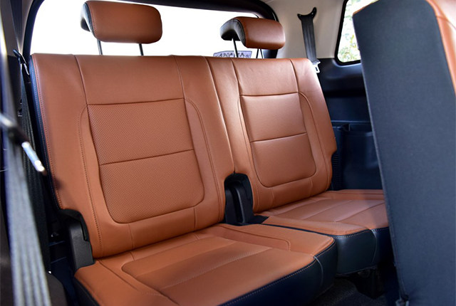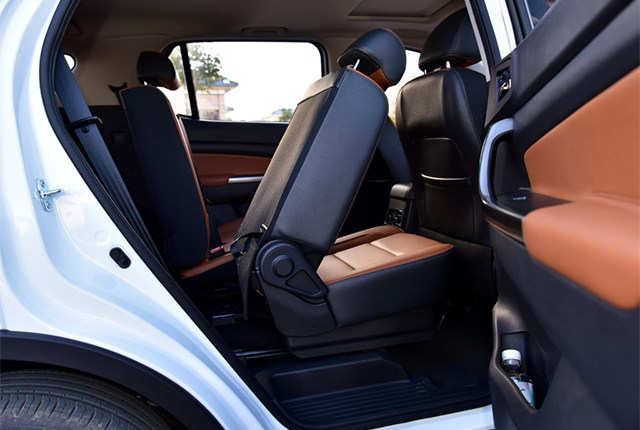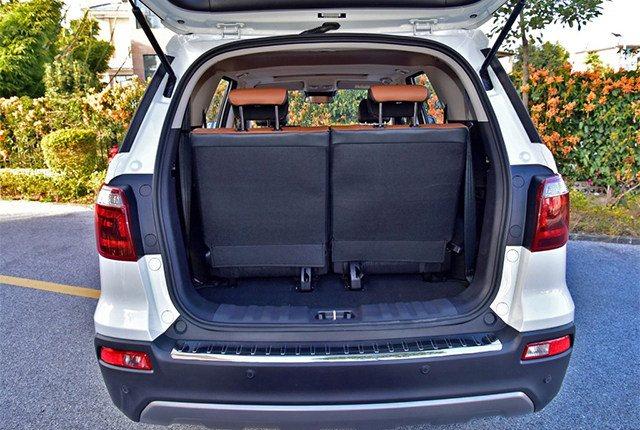 第三排放倒,翻折之后可获得一个更大更平整的后备箱空间,最大纵深达到870mm,最大宽度达到1380mm。