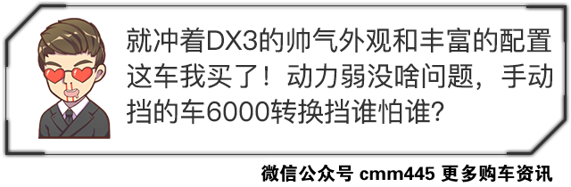说到颜值,肯定不能不提东南DX3,由宾法设计的车身确实动感十足而且很“有范儿”! 另外DX3采用了同级罕见前后独立悬架,行驶舒适性不错。车身尺寸比宝骏510稍大、空间实用,配置也相当丰富,全景天窗、18寸轮毂、胎压监测、ESP等配置很是吸引!只是1.5L发动机在动力上差了点意思,而动力充足的1.5T车型价格较高!