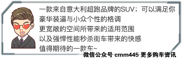 Giulia刚上市不久,阿尔法罗密欧的首款SUV—Stelvio紧随其后,刚刚过去的上海车展上一经展出就引来不小的关注度,其标志性的个性化外观和强悍的性能表现是Stelvio最吸引人的地方,预计售价43万元起。