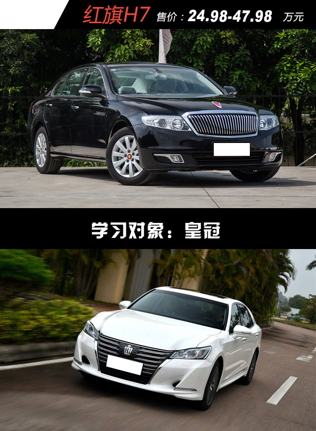 所以具体到车身尺寸而言,红旗H7的轴距要比皇冠长出120mm,达到2970mm。这也使得红旗H7拥有同级别上乘的乘坐空间。不过在底盘的悬挂结构上,红旗H7仍然采用皇冠上的前双叉臂独立悬挂和后多连杆独立后悬挂。红旗H7代号CA6GV1的3.0L发动机与皇冠代号3GR-FE的3.0L发动机,无论是最大马力(231Ps)还是最大扭矩(300Nm)均完全一致,不过红旗的工程师仍然做了一定程度上的优化,使得红旗H7的发动机拥有更好的低扭。或许有的人认为红旗作为最高端的自主品牌,不应该采用丰田的技术,但生产豪华车本就是一件异常困难的事,在成熟平台的基础上进行进一步的优化改进,或许是获取成功代价最小的一种途径。