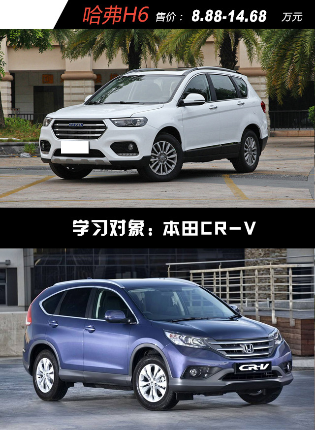 浆糊上,哈弗H6的传说一直传唱不止,大家早已是听得耳朵出茧了:“刷新单月销量记录”“一年卖58万辆”“连续4年SUV销量冠军”…关于这款车为什么卖这么好,本人的拙见是:价格不高、配置齐全、用户口碑广,样样都是一招致命的市场利器。而就是这样一款红遍大江南北的SUV,研发之初却是师从本田CR-V。