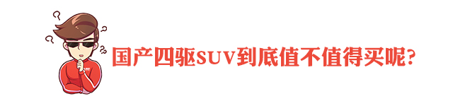 如果你是秉着买一台外观大气空间宽敞舒适性够好的国产SUV,那么完全没必要去选择四驱车型,对舒适性没有太大的作用,更有可能增加不少养车成本。国内仅有少数具备越野条件的国产四驱SUV,但其家用价值和性价比都没有太大的优势,所以再次验证了购置国产四驱SUV的价值并不大,完全没有必要跟风去花多点钱买四驱车,城市驾驶路况多,两驱足以。