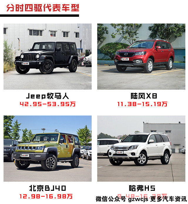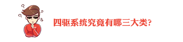 常见的四驱系统分为三大类,分别为全时四驱、分时四驱以及适时四驱,国产SUV大多采用了适时四驱系统,而采用全时四驱系统的SUV大多都是豪华品牌,分时四驱SUV就硬派一些,Jeep牧马人是最具代表的了,下面教授简单阐述一下三大四驱系统的基本原理以及优缺点。