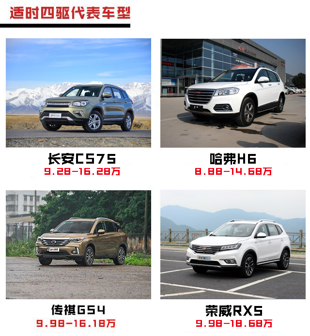 缺点:无法应对强度大的越野路段,效率偏低;主动安全性不如全时四驱。