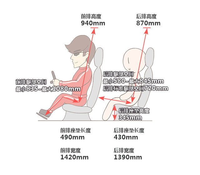 这款锋范最大的亮点也是在这里,轴距相对于旧款来说更长,已经从以前的小型轿车晋升为紧凑型轿车,我们可以看图,在第二排的腿部空间,通常都留有两拳的大小。