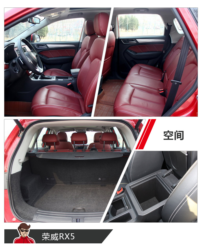 荣威RX5的车身尺寸区别于哈弗H6的地方主要在于长度,比哈弗H6短了55mm。不过这实际上,并没有影响到荣威RX5的车内空间。因为在决定车内空间的轴距上,荣威RX5以2700mm优胜于哈弗H6。所以毫无悬念的是,荣威RX5后排的腿部空间要比哈弗H6出色那么一丁点。不过在我看来最大的优势是,荣威RX5后排中间位置的地板面积宽阔,绝不会出现卡住鞋子的尴尬。尾箱的容积为595L,也足够轻松放进4个20寸的登机箱。