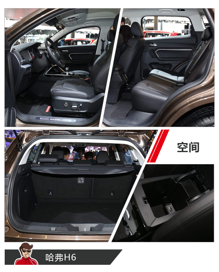 在过往,哈弗H6主打的市场是家庭消费者,这意味其有着可观的空间实用性。而新款的哈弗H6同样继承了这一特点。其长宽高达到了4600×1860×1720(mm),轴距则为2680mm。这样的块头堪称同级别的尖子生,反映到后排空间上,不仅能够轻松容下3位乘客,在腿部空间上也能拥有接近3拳的腿部空余空间(身高1米7)。在尾箱的容积上,官方并没有公布具体的数据,但教授实测840mm的深度以及1030mm的宽度足够大家放进一台滚筒洗衣机了。