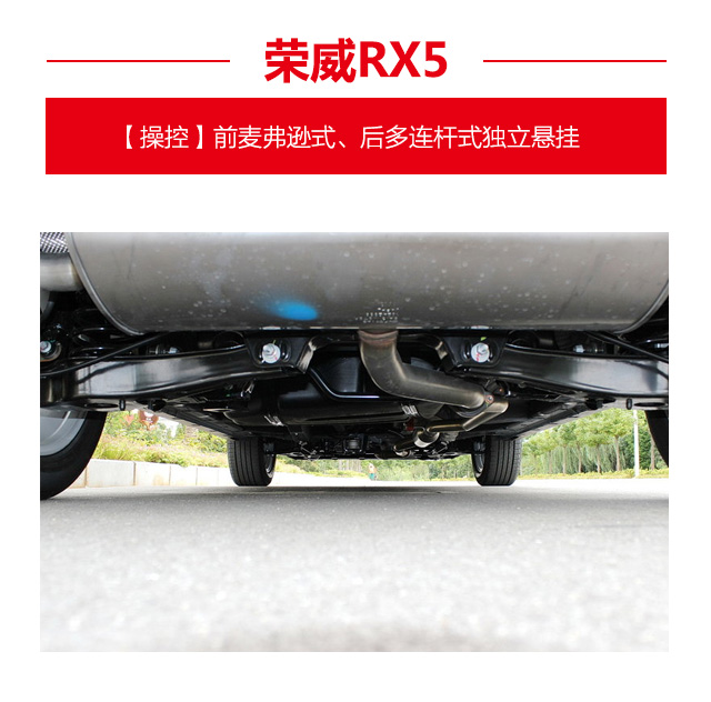 强悍的动力摆在那里,荣威的攻城狮也干脆为荣威RX5配上一副操控性十足的悬挂---前麦弗逊式后多连杆式独立悬挂。在行驶质感上,荣威RX5并没有一味地抹掉震动,在化解了大部分冲击的情况下,仍然保留细微但敏感的路感,悬挂的动作幅度也干脆利落,营造出了德系车一般的韧性。对于部分偶尔喜欢飙飙车的人来说,荣威RX5很是对口味。
