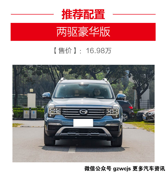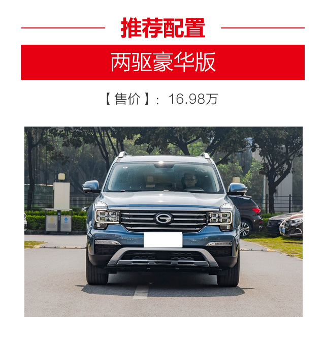 作为一款轴距2800mm的大个头,如果你不选择7座版本,那就跟你带女神去7天,结果只是看了一整宿《喜羊羊与灰太狼》没有任何差别。所以,GS8必须要7座版,那第三排座椅的实用性尤为上乘。其次,售价16.98万的【两驱豪华版】是当中最具购买价值的一款。在这个版本上,符合其豪华定位的配置如真皮电动座椅、无匙启动、自动驻车、自动空调等都悉数齐备,一点儿也不显小家子气。唯一遗憾的,可能只有缺少全景天窗以及座椅通风。但考虑到与更高一级配置相差1.3万的价钱,忍一忍其实也就完了。如果你确实预算比较足,那售价18.28万的【两驱豪华智联版】也是相当不错的选择,毕竟你能够和女神躺在车里看星星,想想也是很值。至于价格最贵一点的版本,我认为同样的价钱,可以选择柯迪亚克了。