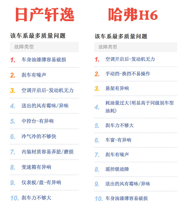 从整个大环境综合来看,国产车的平均水平还是与合资有很大差距,其中一个最致命的硬伤,就是普罗大众最为关心的质量(可靠性)方面,我们拿两台销量都很好的车进行对比,哈弗H6与日产轩逸。