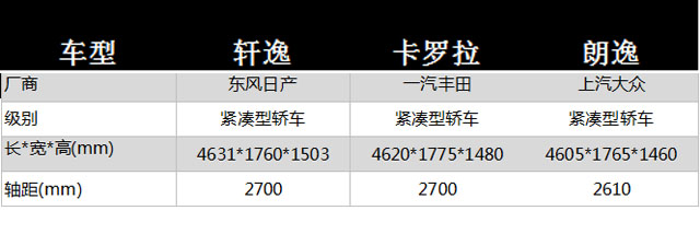 三台车的三围尺寸都比较接近,轩逸与卡罗拉的轴距都长达到2700mm,而朗逸却仅有2610mm。空间上轩逸与卡罗拉会更胜一筹,但朗逸的用户对车内空间还是比较满意的。教授认为朗逸换代之后,应该会进一步加长轴距使得空间更有竞争力。