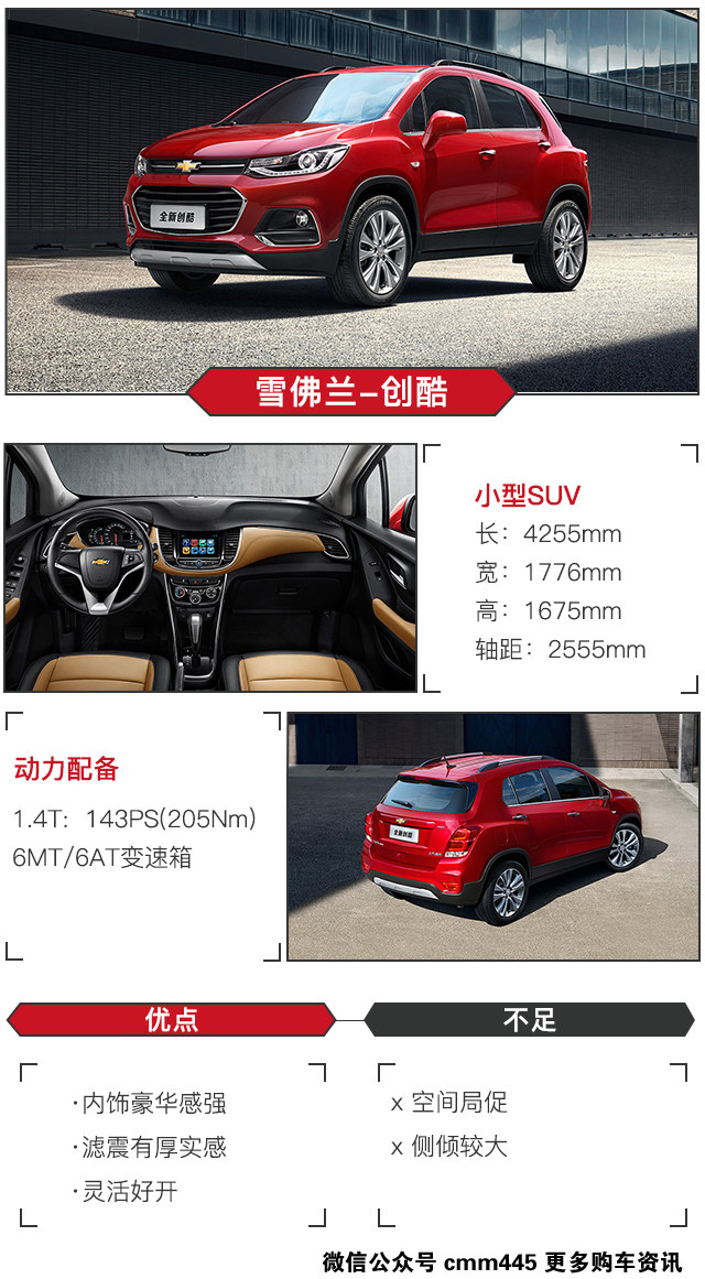 相比别克的昂科拉,它的起售价更凸显竞争力,不过在乘坐空间的表现是它短板,如不追求大空间,创酷也是不错的选择。