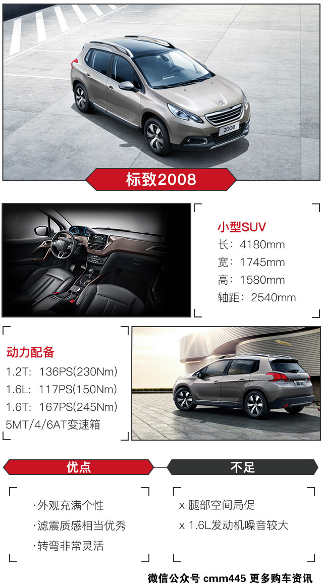 标致一向以外观设计作为其的卖点,且2008在外观设计上时尚典雅,整体看起来非常协调。内饰的布局较为简洁,做工用料较为一般。高配的全景天窗获得不错的开阳感,方向盘的手感也很好。