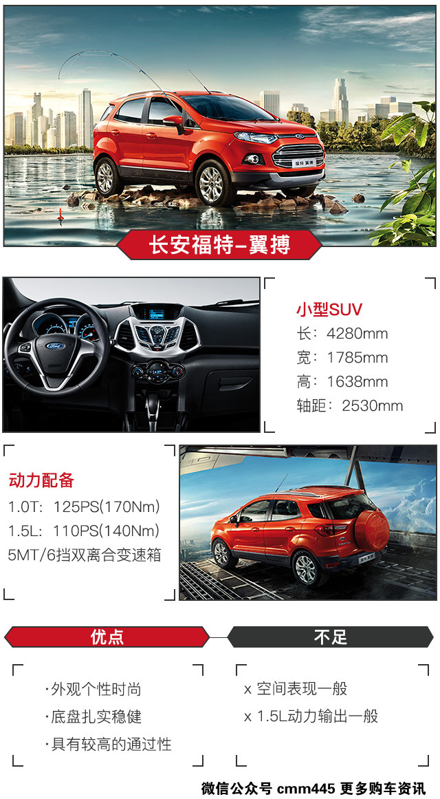 翼博搭载1.5L和1.0T两款发动机,谈不上强劲,满足代步使用还是可以的,底盘调教一直福特的强项,即使是SUV车型也感觉是开着一辆轿车,底盘扎实且转向侧倾不算大,唯一不足是在同级别中油耗偏高。