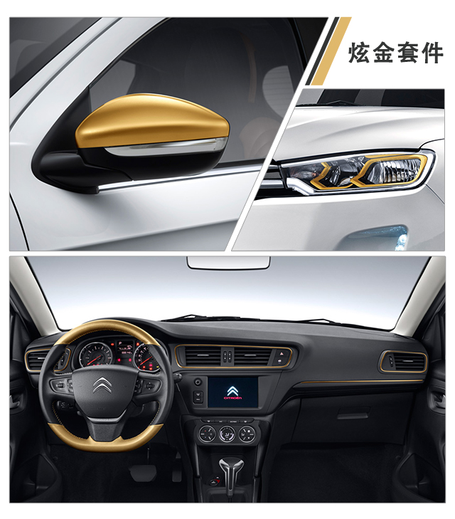 在原本就很时尚的车身上加入了金色的点缀,包括后视镜、轮毂和大灯内部,车内也在方向盘和空调出风口的地方加上了金色装饰条,在不浮夸的前提下也能够达到眼前一亮的效果。