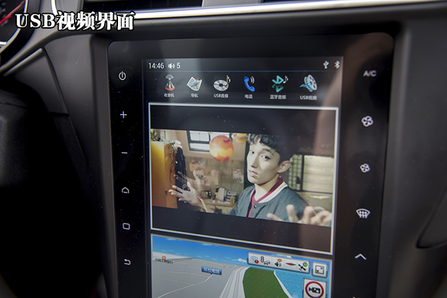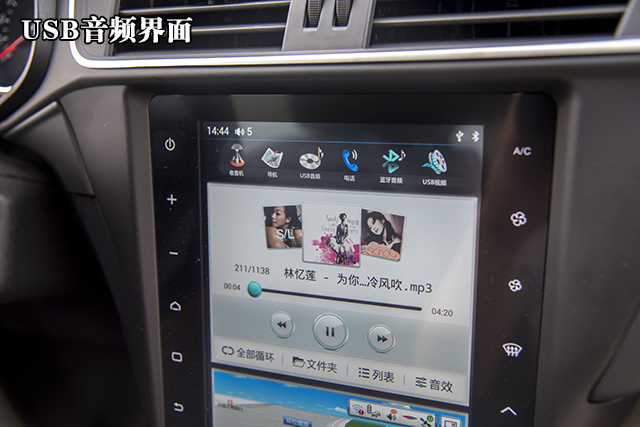 USB音频需要和USB视频放在一块讲,我们只需要将存储有音频与视频文件的U盘插在前排中央扶手箱内的USB插口,系统就会自动识别里面的文件,顺带说一句,该车载系统能够识别无损音乐文件,再加上DSP数字音频处理技术,提供5种音效模式,听觉效果出众。