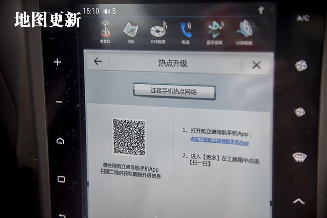 同样是需要手机下载APP,然后用数据线连接,就可以使用百度Carlife,使用期间手机需要保持亮屏状态。其实百度Carlife就是一个完整的交互系统,能够提供地图、电话、音乐(QQ音乐)三大功能,能够寻找附近的兴趣点,包括停车场、加油站、餐馆,也可以进行呼叫救援。
