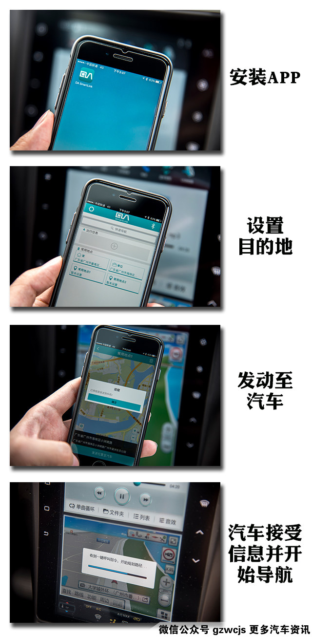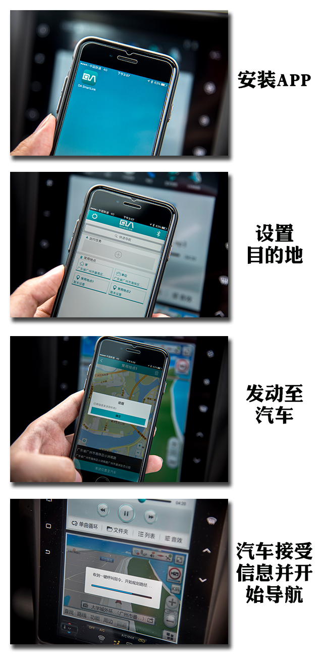 很多人都不喜欢在中控屏幕上设定导航的目的地,因为操作不太方便顺手,稍安勿躁,只需要在手机上下载“DA SmartLink”APP,用蓝牙将手机与车辆连接,我们就能够在手机APP上设置导航的目的地,然后一键发送到车载导航。