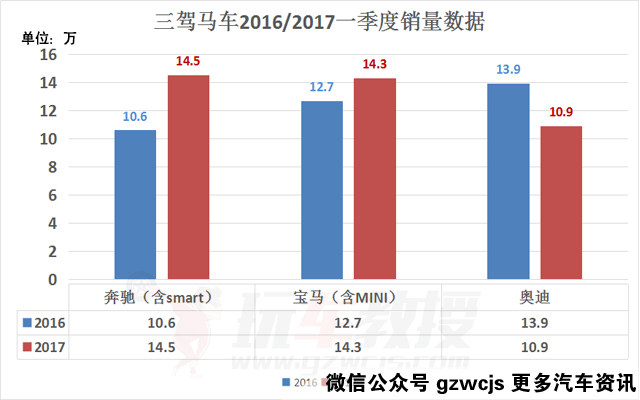 今年第一季度的汽车销售数据已公布,最让人关注的德系“三驾马车”的表现也是几家欢喜几家愁。奔驰的势头依然锐不可当,在中国市场销量达到144947辆(含smart),增长率更是达到37.3%;宝马依然稳健,以142828辆的成绩紧随其后(含MINI),增长率为12.4%;令人唏嘘的是,多年来稳坐国内豪华品牌销量头把交椅的奥迪,勉强过10万辆,108707辆的成绩下降到第三名,跌幅率高达22%。