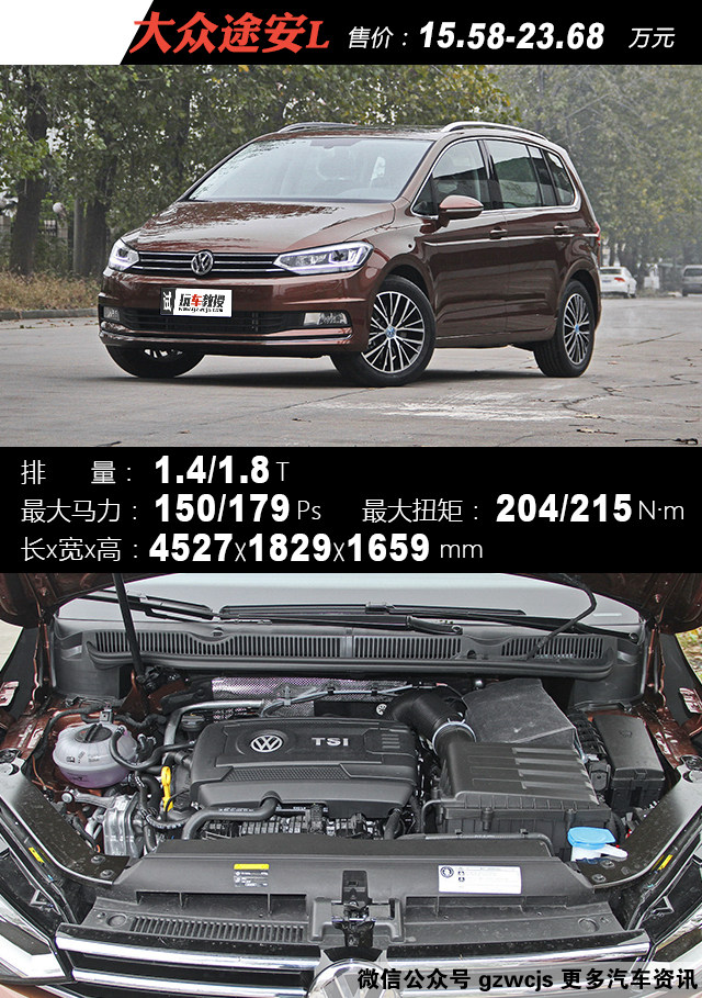 搭载了1.4T+DSG的大众黄金动力组合,而且有着同级别少有的大空间和豪华感。150Ps的高功率EA211对于一辆只比高尔夫重了200kg的途安L来说还是相当充足的动力,论产品力能与之一拼的也许只有本田杰德了。