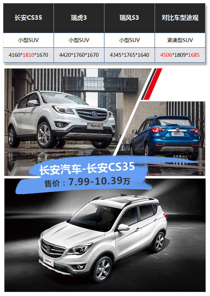 外观乃至内饰的设计都给到消费者一种国际范的赶脚,回看如今新一代的国产小型SUV更多给人的印象是”高瘦“的形象,从视觉感上难免会给人“轻浮”之感,而CS35则大不相同,虽说他车长较短但宽度几乎达到紧凑级SUV的标准,符合国人对于SUV稳重的要求。