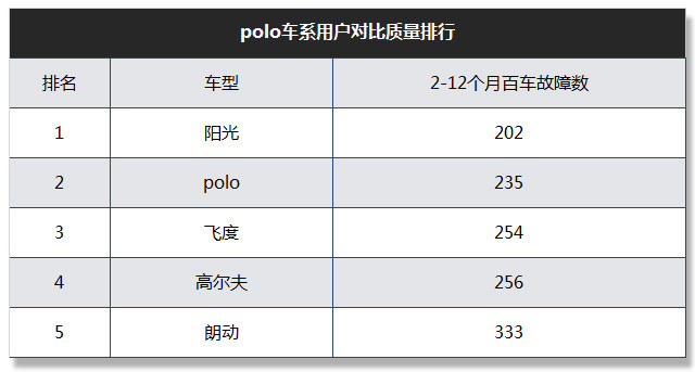 Polo饱受追捧的原因还有他继承大众扎实稳重的传统,慢开有高级感快开有满足感。并且出色的用户口碑也是他成功的必要因素。根据汽车之家口碑数据,polo新车质量研究 2-12个月百车故障数仅仅只有235,成绩相比起主打耐用的本田飞度还要好上不少。